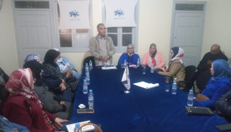 وخلال هذا الاجتماع التنظيمي تمت مناقشة قضايا المناصفة والمساواة وإشكالية تنزيلها على أرض الواقع، ودور التنظيمات النسائية في تقوية حضور المرأة في المؤسسات الحزبية والنقابية والنسيج الجمعوي، وبالتالي تمكين النساء من مراكز صنع القرار لدى الوسائط المجتمعية ولدى المؤسسات المنتخبة التنفيذية والتشريعية والجماعاتية.