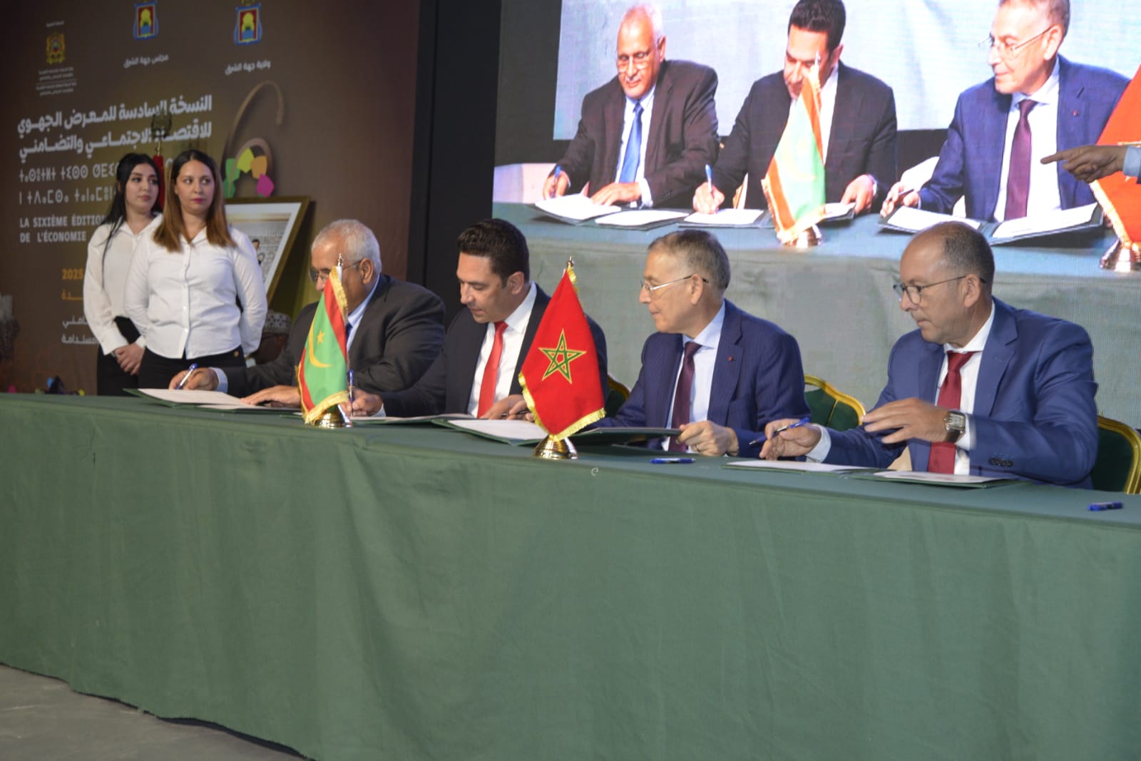 وشهدت فعاليات الافتتاح توقيع ملحق اتفاقية إطار بين جهة الشرق وجهة اترارزة الموريتانية، إلى جانب اتفاقية بين ولاية جهة الشرق والمجلس الإقليمي لجرادة، في خطوة تهدف إلى تقوية التعاون جنوب- جنوب، وترسيخ آليات التنمية الترابية المستدامة.
