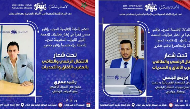تنظم الأمانة الإقليمية للبام بإقليم صفرو ندوة في إطار فعاليات النسخة الأولى للأبواب المفتوحة للحزب؛ تحت شعار:”الانتقال الرقمي والطاقي بالمغرب: الآفاق والتحديات”