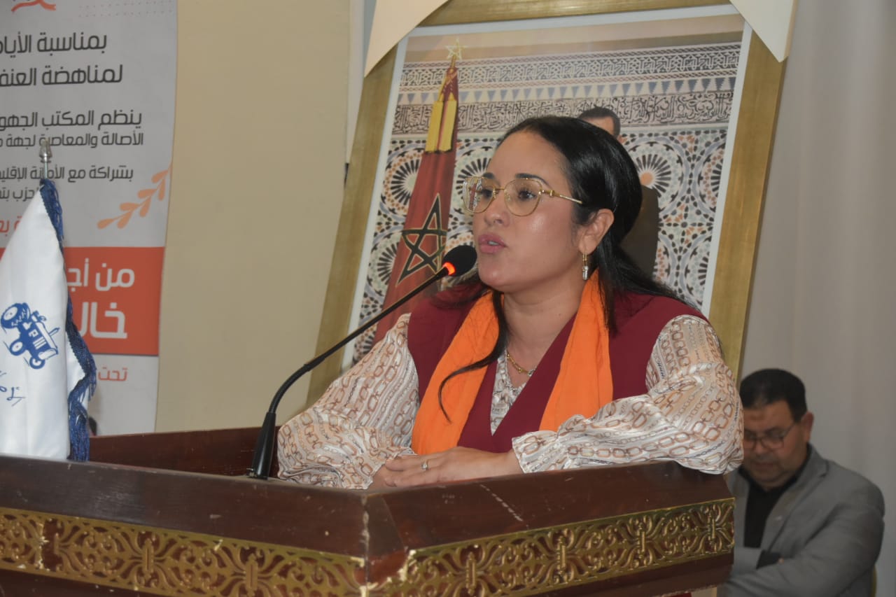 الندوة التي حملت شعار: “لا عذر للعنف ضد النساء والفتيات”؛ وسيرت أشغالها حكمت بادي، نائب رئيسة المكتب الجهوي لمنظمة النساء بجهة طنجة تطوان الحسيمة، شددت على ضرورة تعزيز التمكين الاقتصادي والاجتماعي للنساء، من خلال محاربة الهدر المدرسي، وزيادة فرص التعليم، وتوفير آليات لدعم الاستقلال المالي للمرأة، بما يسهم في تحسين ظروفهن المعيشية.