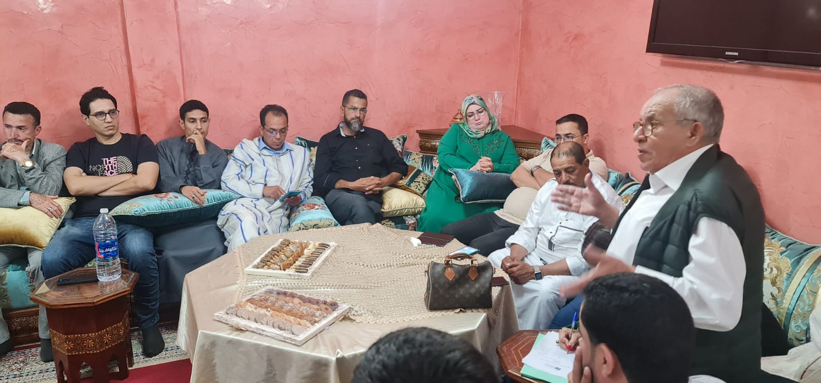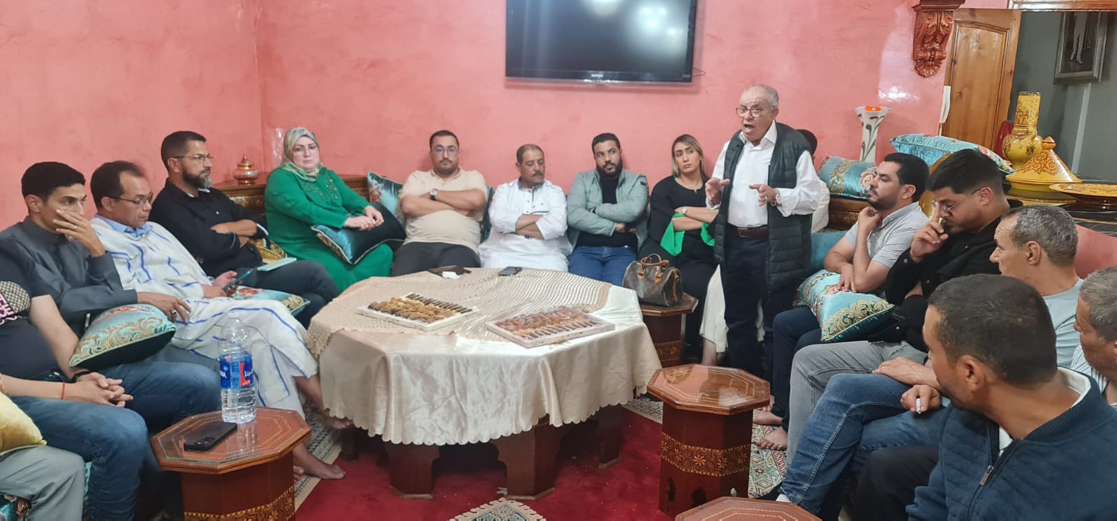 اللقاء الذي ترأسه محمد الطاوس رئيس المجلس الإقليمي محمد الطاوسي، قدمت خلاله مجموعة من المداخلات القيمة توقفت عند الدور الكبير الذي يقوم به الأمين الاقليمي للرقي بصورة الحزب بالإقليم، منوهين بالعمل الكبير المنجز على مستوى جماعة التمسية التي يترأسها الحزب.