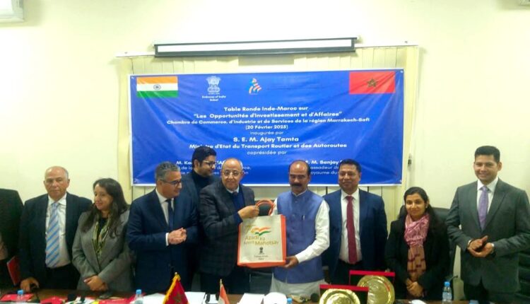 استقبل، أعضاء من مكتب غرفة التجارة والصناعة والخدمات لجهة مراكش- أسفي، بالمقر الجهوي للغرفة، معالي السيد أجاي تامتا، وزير الدولة للنقل الطرقي والطرق السريعة بحكومة الهند، مرفوقا بالسيد سانجاي رنا، سفير الهند بالمغرب، والسيدة صوميا ناير مستشارة بالسفارة الهندية بالمغرب، إلى جانب وفد مهم يضم رجال أعمال هنود يعملون بقطاعات مختلفة بالمغرب.
