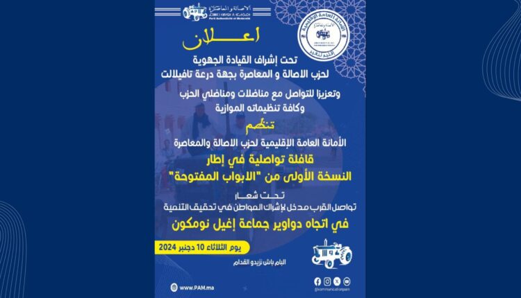 تحت إشراف القيادة الجهوية لحزب الأصالة والمعاصرة بجهة درعة- تافيلالت، وتعزيزا للتواصل مع مناضلات ومناضلي الحزب وكافة تنظيماته الموازية.
