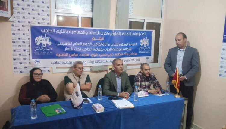 أسس حزب الأصالة والمعاصرة، يوم الأحد 26 أكتوبر الجاري، أمانته المحلية بجماعة الحاجب، خلال جمع عام تأسيسي انعقد تحت إشراف الأمانة الإقليمية للحزب، وتم خلاله انتخاب خليد صالحي أمينا محليا بالإجماع، وسط أجواء من التوافق والدعم الجماعي لقيادته للمرحلة المقبلة.