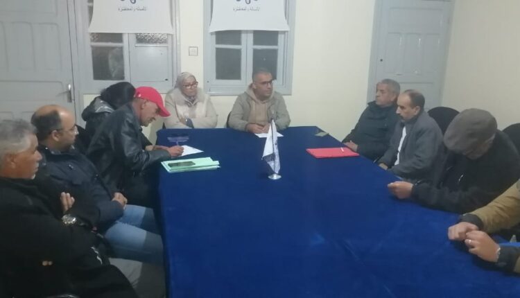 وحضر هذا الاجتماع الإعدادي عضو الأمانة الجهوية السيدة المحمودي تورية و الأمناء المحليون بدوائر إقليم الحاجب.
