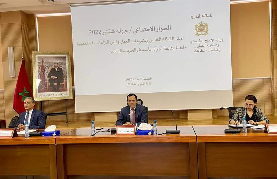 في إطار جولة شتنبر 2022 من الحوار الاجتماعي، أشرف، وزير الإدماج الاقتصادي والمقاولة الصغرى والتشغيل والكفاءات، السيد يونس السكوري، على اجتماع لجنة القطاع الخاص وتشريعات العمل وفض النزاعات المستعصية، ولجنة متابعة المأسسة والحريات النقابية.