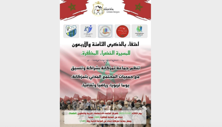 احتفاء بالذكرى ال 48 للمسيرة الخضراء المظفرة، ينظم مجلس جماعة تمزݣانة (إقليم تاونات) برئاسة محمد الحجيرة؛ بشراكة وتنسيق مع جمعيات المجتمع المدني بتمزݣانة، يوما تربويا، رياضيا وثقافيا.