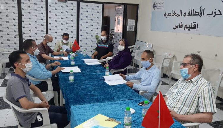 فيما تمت مناقشة مشروع ورقة سياسية لتصور الحزب بفاس لمرحلة ما بعد جائحة كورونا و التي كانت موضوع اجتماعات عن بعد خلال الحجر الصحي.