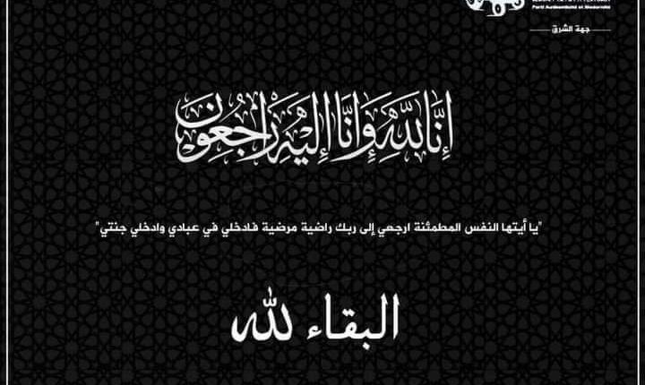 بقلوب مؤمنة بقضاء الله وقدره وببالغ الحزن والأسى العميقين تلقينا نبأ وفاة خال الاخ محمد بوعرورو عضو مجلس جماعة وجدة و عضو المجلس الوطني لحزب الأصالة و المعاصرة .