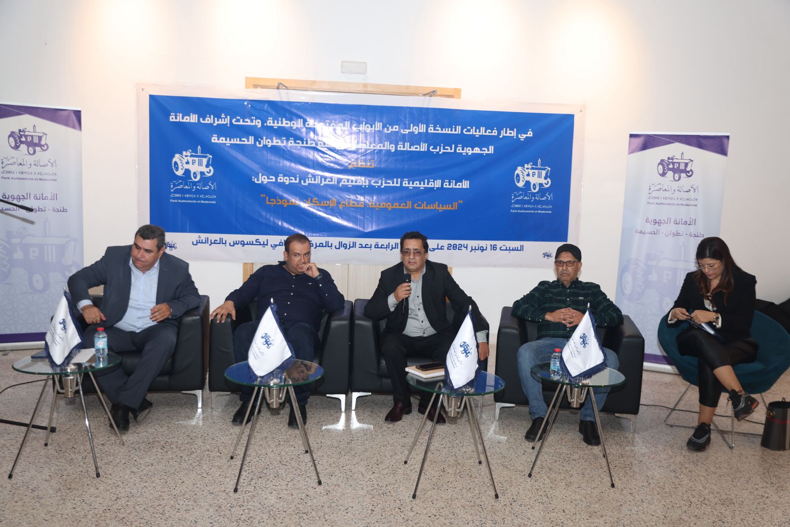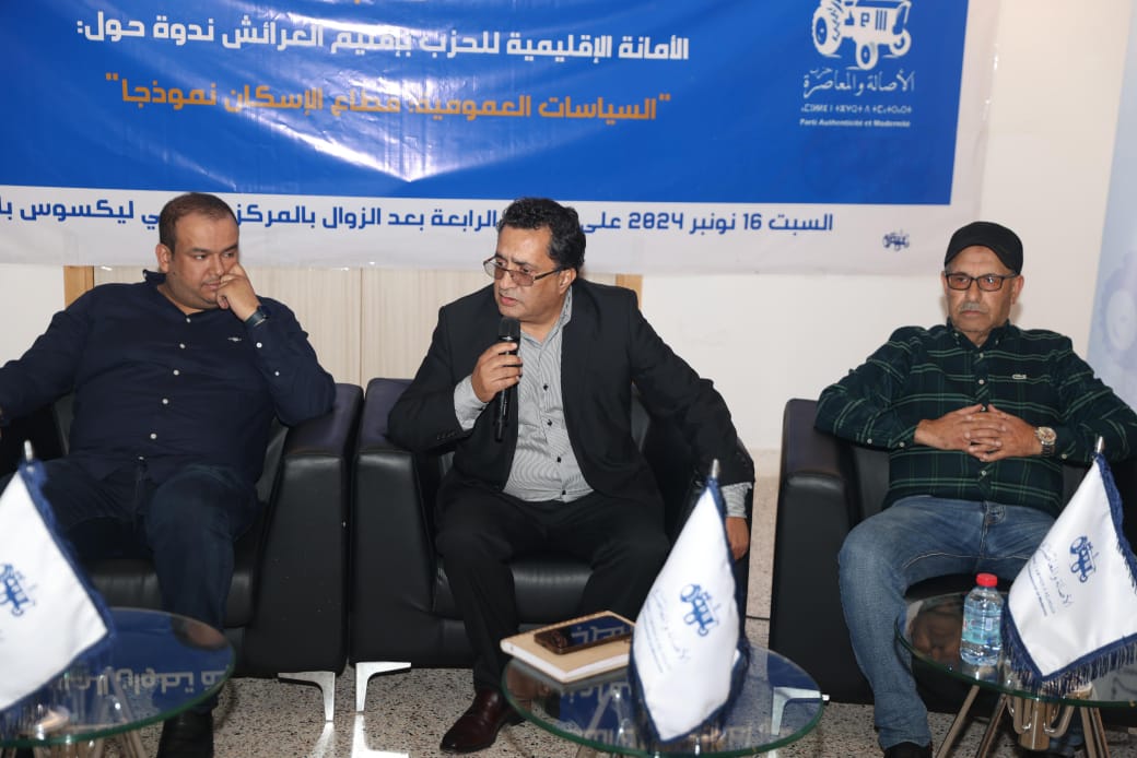 في إطار فعاليات النسخة الأولى للأبواب المفتوحة لحزب الأصالة والمعاصرة؛ وتحت إشراف الأمانة الجهوية للحزب بجهة طنجة تطوان الحسيمة؛ نظمت الأمانة الإقليمية للحزب بالعرائش؛ ندوة حول موضوع: “السياسات العمومية.. قطاع الإسكان نموذجا”؛ وذلك يوم السبت 16 نونبر 2024؛ بالمركز الثقافي ليكسوس بالعرائش.