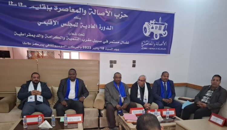 نظم المجلس الإقليمي لحزب الأصالة والمعاصرة لإقليم طاطا، يوم السبت 18 يناير 2025 بالمركب السوسي-،ثقافي بمركز طاطا، فعاليات الدورة العادية الثانية للمجلس تحث شعار: “نضال مستمر في سبيل مغرب التنمية والكرامة والديمقراطية”.