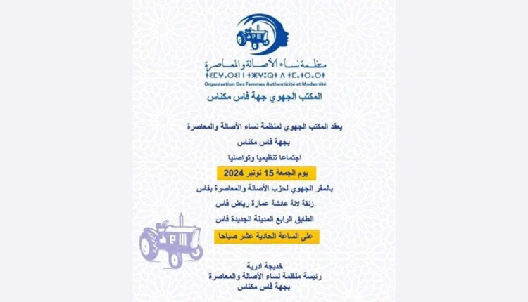 يعقد المكتب الجهوي لمنظمة نساء الأصالة والمعاصرة بجهة فاس- مكناس؛ اجتماعا تنظيميا وتواصليا.