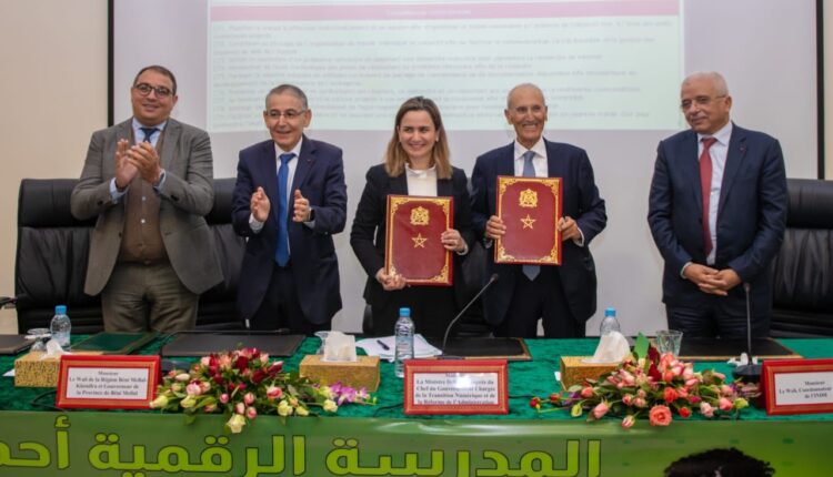 وبهذه المناسبة، تم التوقيع على اتفاقية شراكة بين كل من وزارة الانتقال الرقمي وإصلاح الإدارة ووزارة الاقتصاد والمالية وجمعية أحمد الحنصالي للتنمية بجهة بني ملال خنيفرة، تهم دعم إحداث المدرسة الرقمية أحمد الحنصالي ببني ملال، وتلتزم الجمعية بموجبها بمواكبة ما بين 60% و 70 % في المائة من خريجي المدرسة للإدماج في سوق الشغل أو إحداث مقاولاتهم الذاتية، بتنسيق مع الشريك البيداغوجي لجمعية أحمد الحنصالي للتنمية.