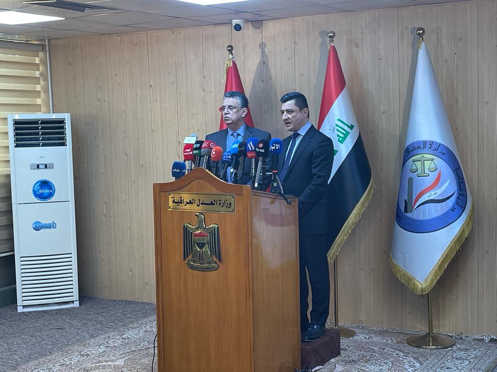 في ختام زيارته الرسمية لجمهورية العراق، وقع كل من وزير العدل السيد عبد اللطيف وهبي، ونظيره العراقي الدكتور خالد شواني، يومه السبت 11 مارس 2023، بالعاصمة العراقية بغداد، على بروتوكول تفاهم بين البلدين في مجال العدالة.