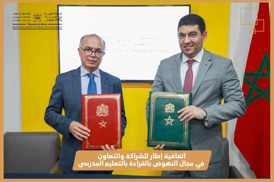 وقع، وزير الشباب والثقافة والتواصل، محمد المهدي بنسعيد، ووزير التربية الوطنية والتعليم الأولي والرياضة، شكيب بنموسى؛ داخل المعرض الدولي للنشر والكتاب اتفاقية إطار للشراكة والتعاون في مجال النهوض بالقراءة بالتعليم المدرسي بين الوزارتين.