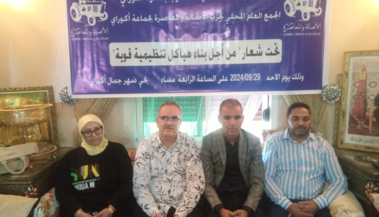بتنسيق مع الأمانة الجهوية لحزب الأصالة والمعاصرة لجهة فاس مكناس، وتحت إشراف الأمانة الإقليمية للحزب بإقليم الحاجب، انعقد الجمع العام المحلي لحزب الأصالة والمعاصرة بجماعة اكوراي بإقليم الحاجب، وذلك يوم الأحد 29 شتنبر 2024 بحي ضهر الجمل بجماعة اكوراي.