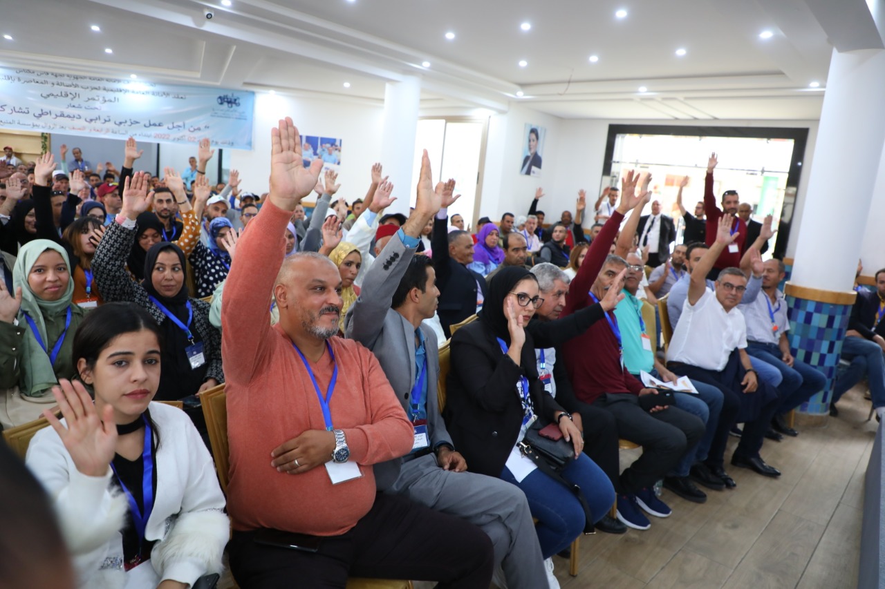 كما عرفت أشغال هذا المؤتمر، الذي نظم تحت شعار: “من أجل عمل حزبي ترابي ديمقراطي تشاركي وفعال”، حضوراً وازنا لكافة الفعاليات الحزبية بالإقليم، وتمثيلية شاملة لكل فروع الأمانات المحلية للحزب بالإقليم، يتقدمهم الأمين الجهوي للحزب بجهة فاس-مكناس، الدكتور محمد الحجيرة، والنائب البرلماني جواد الشامي، والأمين الإقليمي للحزب نبيل الرماش والأمناء المحليين، وشهدت انتخاب فاطمة الزهراء الغيواني نائبة أولى للأمين الإقليمي، وادريس باخلو نائباً ثانياً، بالإضافة إلى انتخاب باقي أعضاء الأمانة الإقليمية.