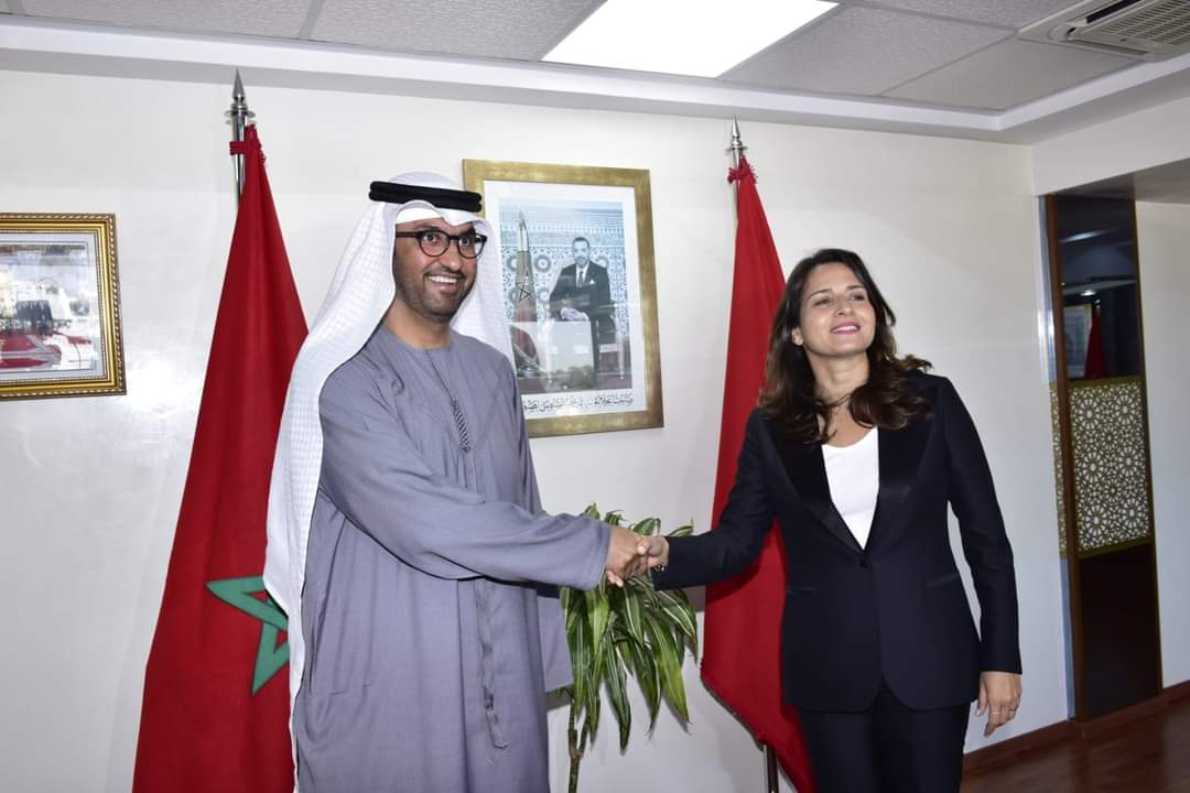 أجرت وزيرة الانتقال الطاقي والتنمية المستدامة، السيدة ليلى بنعلي؛ يوم الاثنين 19 دجنبر 2022، لقاء مع وزير الصناعة والتكنولوجيا المتقدمة الإماراتي والمبعوث الخاص لدولة الإمارات للتغير المناخي؛ السيد سلطان بن أحمد الجابر.