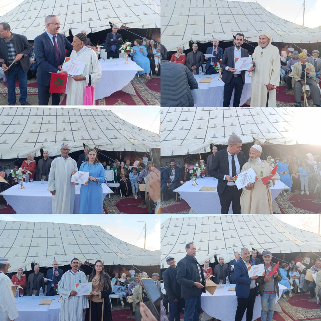 واختتمت فعاليات الندوة بتقديم لوحات فنية ومسرحيات تمجد المسيرة الخضراء ورموزها الوطنية، وعروض من التراث الجبلي المحلي تمزج بين العيطة الجبلية وفن التبوريدة، إلى جانب تكريم عدد من أبناء جماعتي تمزكانة وسيدي المخفي الذين شاركوا فعليا في المسيرة سنة 1975، ومنحهم شهادات تقدير وجوائز رمزية عرفانا بإسهامهم الوطني.