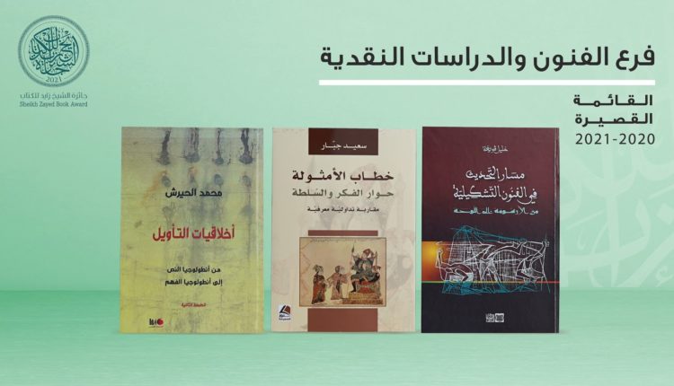 وأوضحت الجائزة في بيان أن القائمة القصيرة لفرع “الفنون والدراسات النقدية” تضنمت كتاب “خطاب الأمثولة، حوار الفكر والسلطة مقاربة تداولية معرفية” للباحث المغربي سعيد جبار، الصادر عن “دار كنوز المعرفة للنشر والتوزيع” في 2019، وكتاب “أخلاقيات التأويل: من أنطولوجيا النص إلى أنطولوجيا الفهم” للباحث المغربي محمد الحيرش، عن “دار الفاصلة للنشر” عام 2019، إلى جانب كتاب “مسار التحديث في الفنون التشكيلية من الأرسومة إلى اللوحة” للباحث التونسي خليل قويعة.