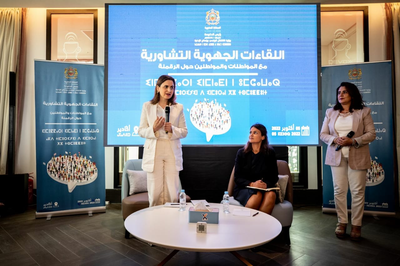 عقدت، أمس الأربعاء 05 أكتوبر 2022، وزيرة الانتقال الرقمي وإصلاح الإدارة، غيثة مزور؛ جلسة إنصات مع الشباب المطورين وخبراء تكنولوجيا المعلومات المشاركين في ملتقى ديفوكس 2022، الذي تحتضنه مدينة أكادير تحت الرعاية السامية لصاحب الجلالة الملك محمد السادس نصره الله.