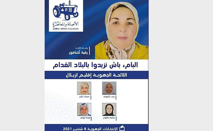 رشح حزب الأصالة والمعاصرة السيدة رقية خنافور وكيلة للائحة ممثلة لإقليم أزيلال لانتخاب أعضاء جهة بني ملال خنيفرة، وذلك إيمانا منه بالقيمة السياسية للسيدة خنافور، وكذا إمكانية تقديم الإضافة داخل مجلس الجهة.