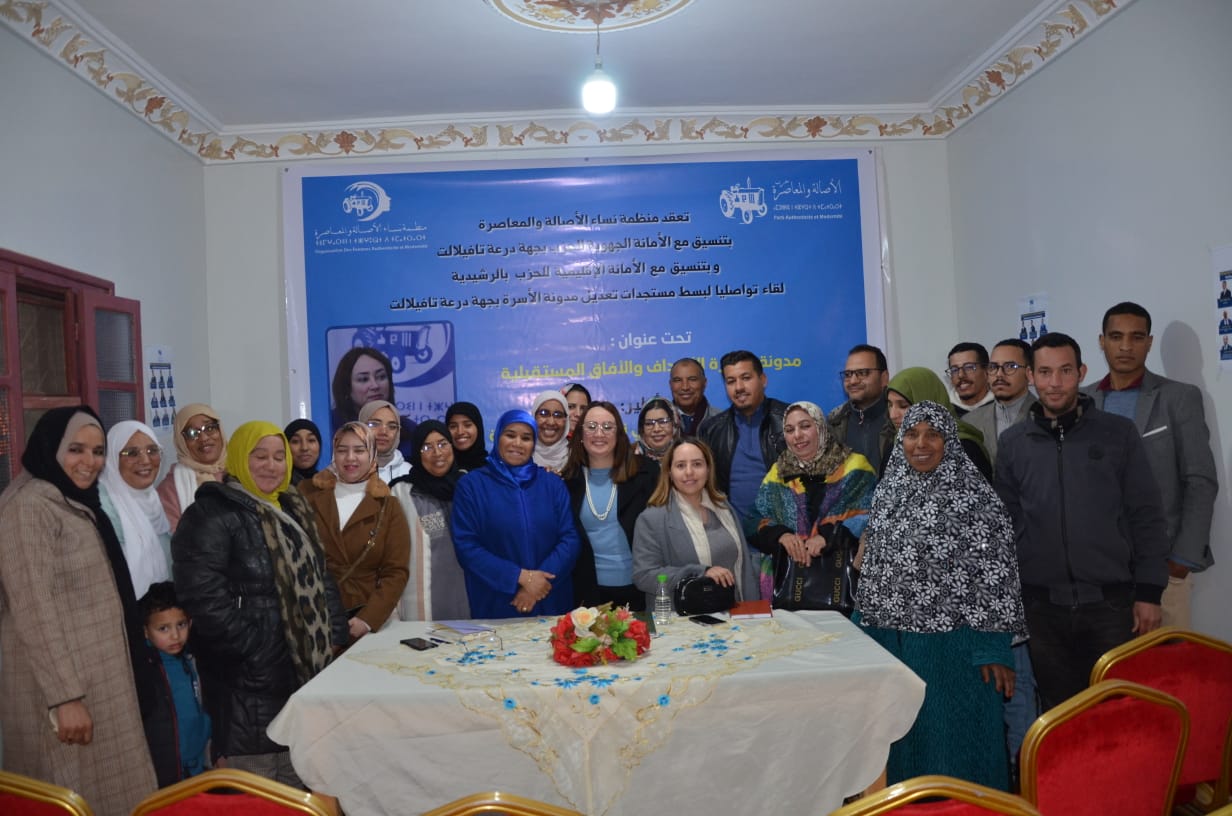 تحت إشراف منظمة نساء الأصالة والمعاصرة وبتنسيق مع الأمانة الجهوية للحزب بجهة درعة- تافيلالت، والأمانة الإقليمية للحزب بالرشيدية، وتحت شعار “مدونة الأسرة: الأهداف والآفاق المستقبلية”.