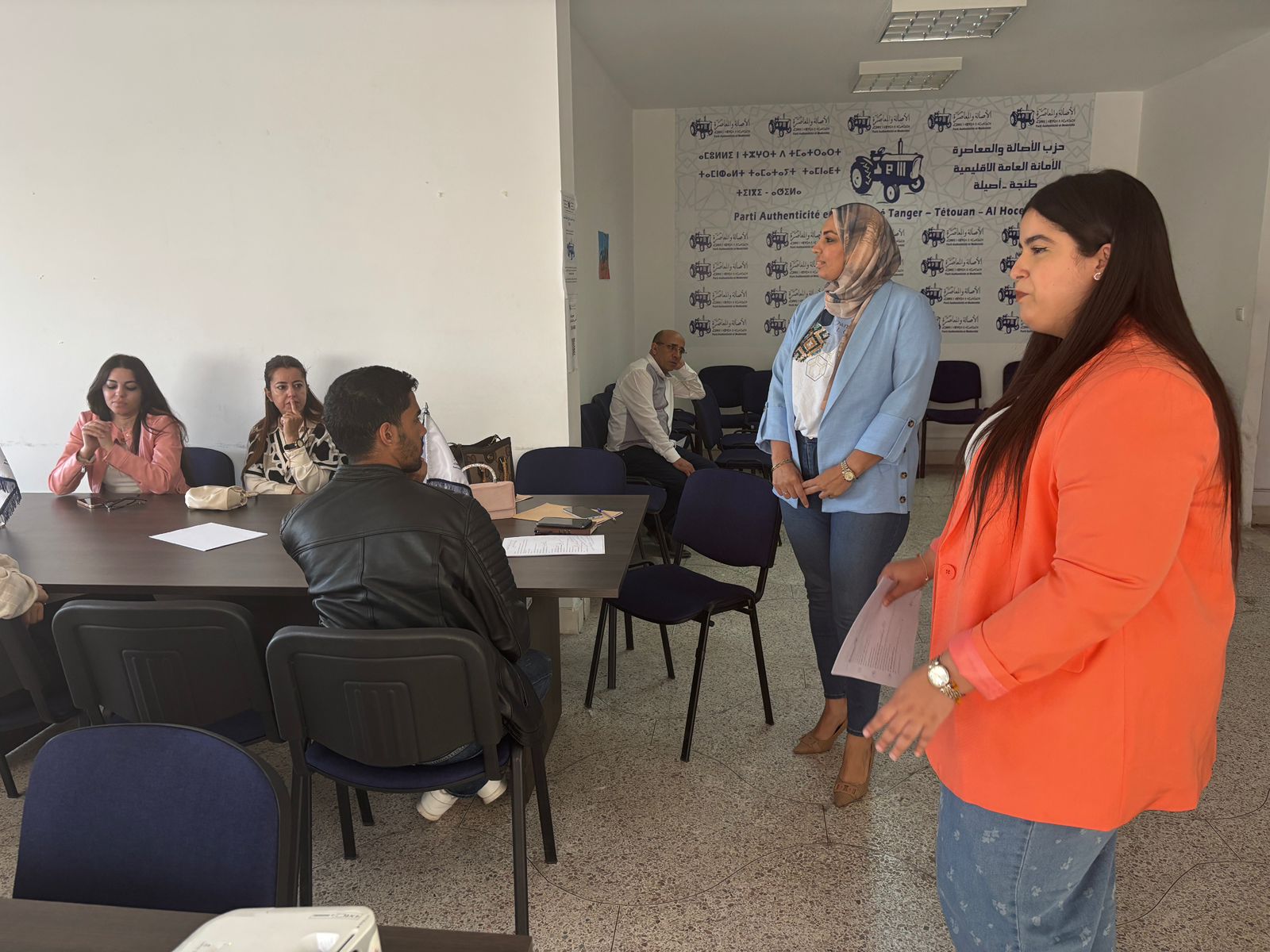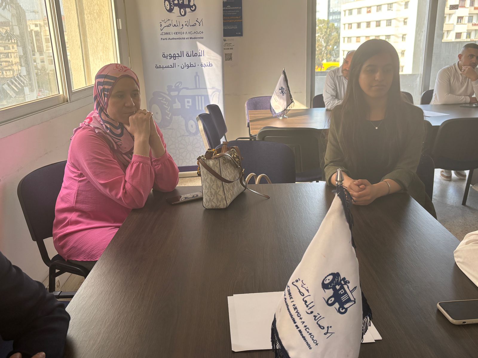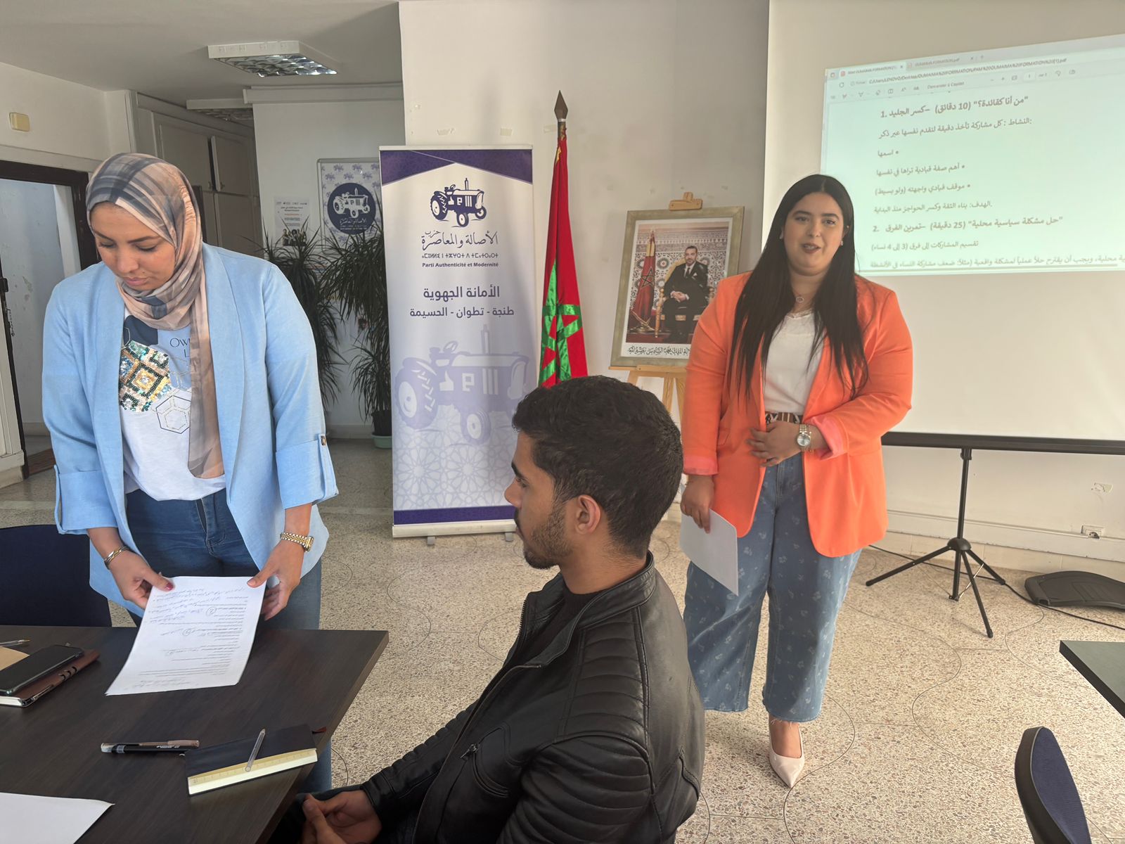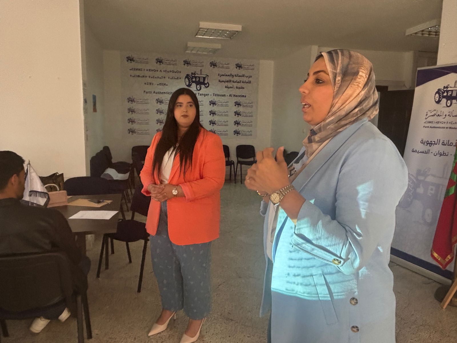 وأشرفت على تأطير هذه الورشة كل من السيدة أسماء أهراو، رئيسة المكتب الجهوي لمنظمة نساء الأصالة والمعاصرة بجهة طنجة- تطوان- الحسيمة، والمهندسة أميمة حمزاوي، عضو الأمانة المحلية للحزب بطنجة المدينة.