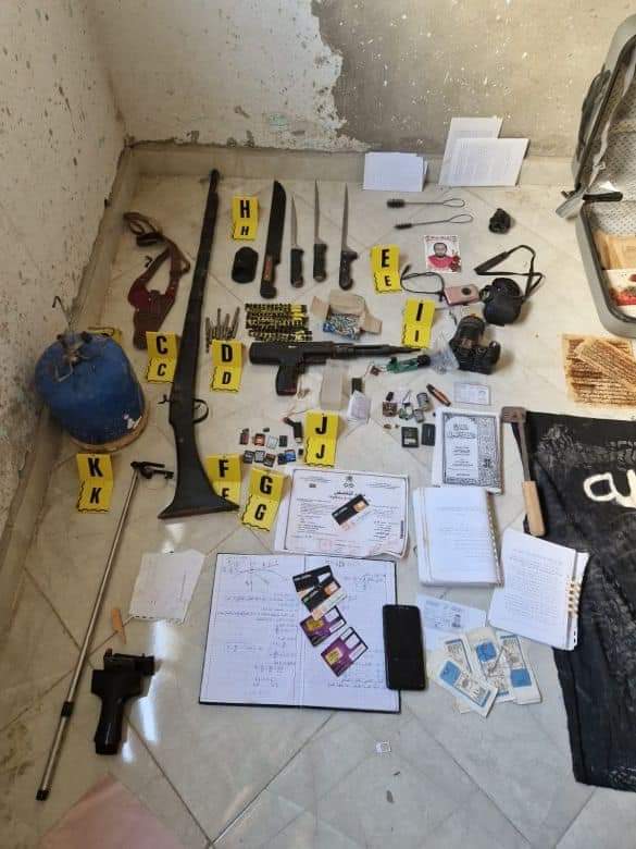 وقد أسفرت عمليات التفتيش المنجزة داخل الغرفة التي يشغلها المشتبه فيه عن حجز أسلحة وإصدارات ذات طبيعة متطرفة، وهي عبارة عن الآلة الثاقبة المستخدمة في الاعتداء، وقماش أسود يحمل ما يسمى “راية” تنظيم داعش الإرهابي، وبندقية تقليدية تعمل بالبارود، وأربع أسلحة بيضاء من أحجام مختلفة، وتسع قطع حديدية حادة، فضلا عن غلاف جلدي مخصص للمسدسات الفردية.