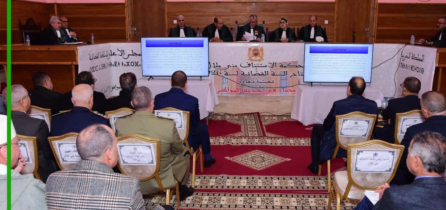 للإشارة، حضر جلسة افتتاح السنة القضائية الجديدة، التي ترأسها الرئيس الأول لمحكمة الإستئناف ببني ملال والوكيل العام لدى المحكمة ذاتها، كل من ممثل المجلس الأعلى للسلطة القضائية، وكلاء الملك بمختلف المحاكم التابعة لبني ملال، رؤساء المحاكم الإدارية والإبتدائية، والقضاة والنواب وأطر وموظفي المحاكم.