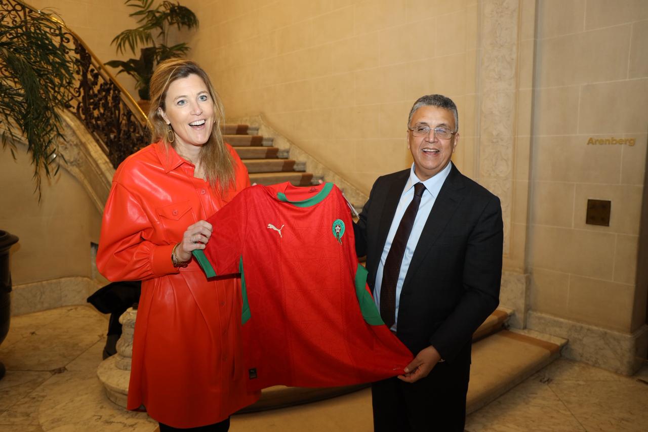 في إطار الدعم المتواصل للمنتخب الوطني لكرة القدم على الصعيد الدولي، أهدى عبداللطيف وهبي وزير العدل لنظيرته البلجيكية قميص المنتخب الوطني، وذلك خلال اللقاء الذي جمع بينهما أمس الاثنين 12 يناير الجاري ببروكسيل.