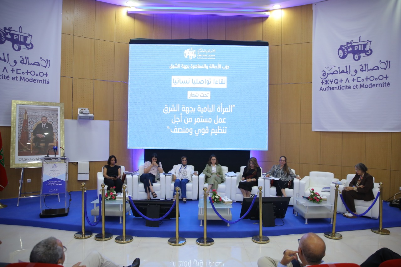 وذكرت مزور، أن هذا اللقاء التواصلي سيشكل فرصة لتبادل المقترحات والآراء لبناء تنظيم نسائي ذي رؤية بعيدة المدى، وبرنامج واضح يترجم طموح الحزب وتموقعه في المشهد السياسي المغربي، مؤكدة أن اختيار شعار “المرأة البامية بجهة الشرق، عمل مستمر من أجل تنظيم نسائي قوي ومنصف”، مليء بعدد من الدلالات والرمزيات التي تُؤكد على مكانة المرأة بهذه الجهة في مختلف المجالات، العلمية والاجتماعية والاقتصادية، بحيث تشكل النساء أكثر من 51 في المائة من ساكنة الجهة، وهي الساكنة التي تُشكل بدورها 6.8% من مجموع سكان المملكة.