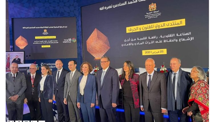 حضرت كل من الوزيرة المنتدبة لدى رئيس الحكومة المكلفة بالانتقال الرقمي وإصلاح الإدارة، السيدة غيثة مزور، بمعية وزير الإدماج الاقتصادي والمقاولة الصغرى والتشغيل والكفاءات، السيد يونس السكوري، أشغال الملتقى الافتتاحي من أجل إعطاء الانطلاقة الرسمية للدورة الثامنة للأسبوع الوطني للصناعة التقليدية.