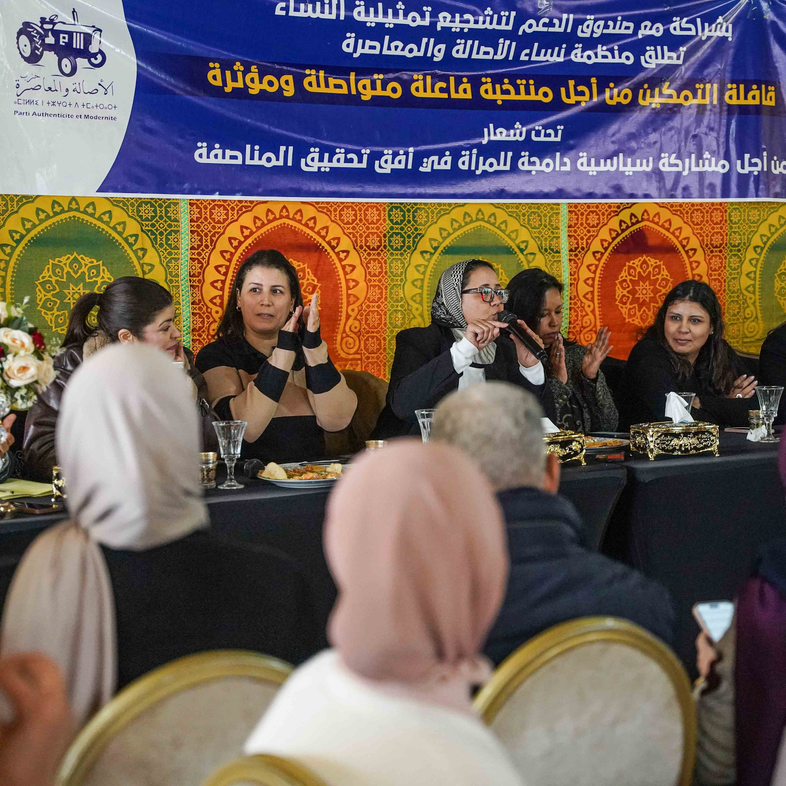 واستعرضت منسقة المشروع برنامج ورشات اللقاء، الذي تضمن شهادات لمنتخبات من إقليم وزان ومن جهة طنجة- تطوان- الحسيمة بشكل عام، إلى جانب جلسة محاكاة لتسيير مجلس جماعي، وعرضا حول التدبير الترابي في ضوء القوانين المنظمة، فضلا عن ورشة تكوينية حول التدبير الجماعي والمشاركة النسائية، وورشة تدريبية حول بلورة المبادرات وصياغة المقترحات المرتبطة بالعمل داخل المجالس المنتخبة.