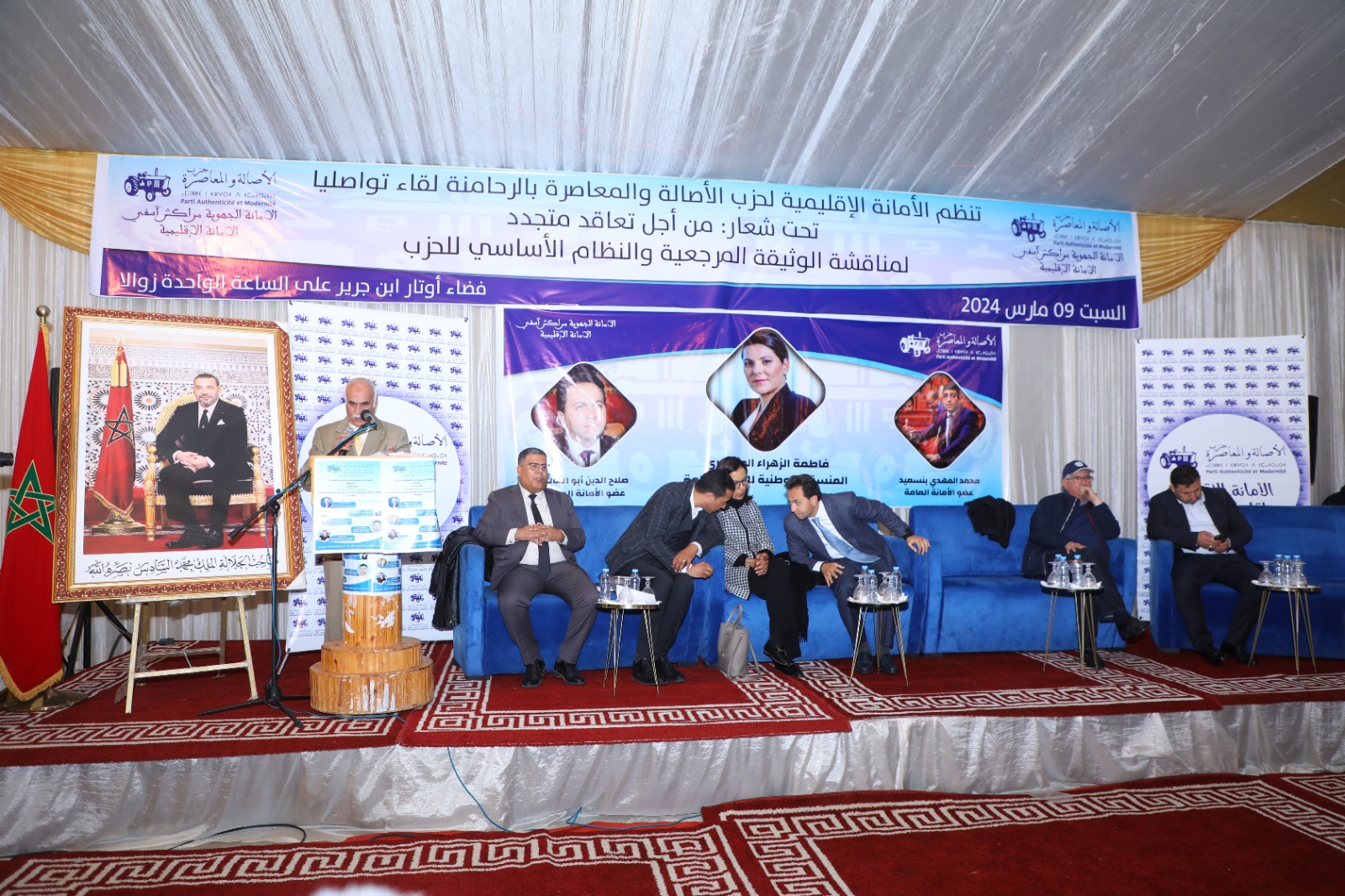 انخراطاً منها في الدينامية التواصلية التي أطلقتها القيادة الجماعية للأمانة العامة لحزب الأصالة والمعاصرة بعد المؤتمر الوطني الخامس، عقدت الأمانة الإقليمة للحزب بإقليم الرحامنة تحت إشراف الأمانة الجهوية للبام بجهة مراكش-أسفي، يوم السبت 9 مارس 2024، لقاءً تواصلياً حول الوثيقة المذهبية والقانون الأساسي.