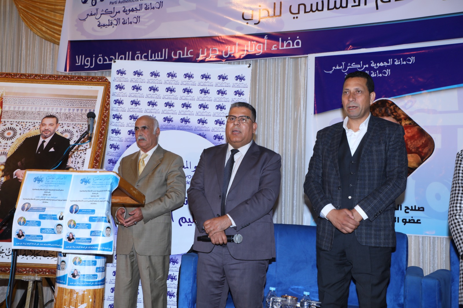 اللقاء التواصلي عرف حضوراً مميزاً ومكثفاً للقيادة الحزبية يتقدمها عضو القيادة الجماعية للأمانة العامة السيد صلاح الدين أبوالغالي، والأمين الجهوي للحزب بجهة مراكش أسفي، طارق د.حنيش؛ والنائب البرلماني عبد اللطيف الزعيم وعضوي المجلس الوطني السيدات فتيحة العيادي ونجاة الناظيفي، وأعضاء المجلس الوطني رحال الجديد وجمال مكماني وعبد الحق فائق.