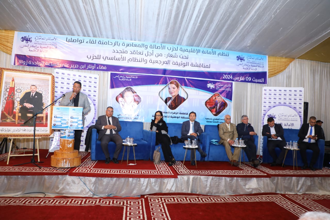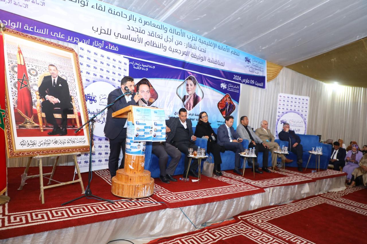 وبسط الأمين الجهوي برنامج العمل المتكامل الذي سطرته الأمانة الجهوية مباشرة بعد المؤتمر الوطني الخامس وفق رؤية تنظيمية تنهل من روح مشروع الأصالة والمعاصرة خارطة طريقها وذلك بجدولة زمنية جادة وملتزمة بتحقيق الأهداف المسطرة والتي تتضمن ضمن الأولويات المتعاقد بشأنها.