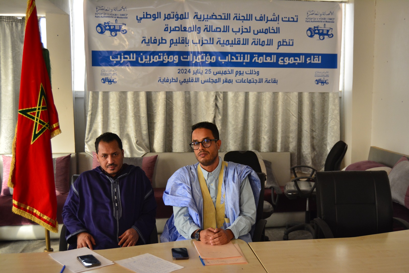 في جو نضالي توافقي ومسؤول وتحت إشراف أعضاء اللجنة التحضيرية للمؤتمر الوطني الخامس سرحان الأحرش -عضو لجنة فرز العضوية- ومحمد الفيلالي- المنسق الإقليمي للحزب بطرفاية-، تم يومه الخميس 25 يناير 2024 بالقاعة الكبرى للمجلس الإقليمي لطرفاية، المصادقة بالإجماع على لائحة المؤتمرات والمؤتمرين المشاركين في المؤتمر الوطني الخامس للحزب المزمع عقده أيام 9 و 10 و 11 فبراير 2024 ببوزنيقة.