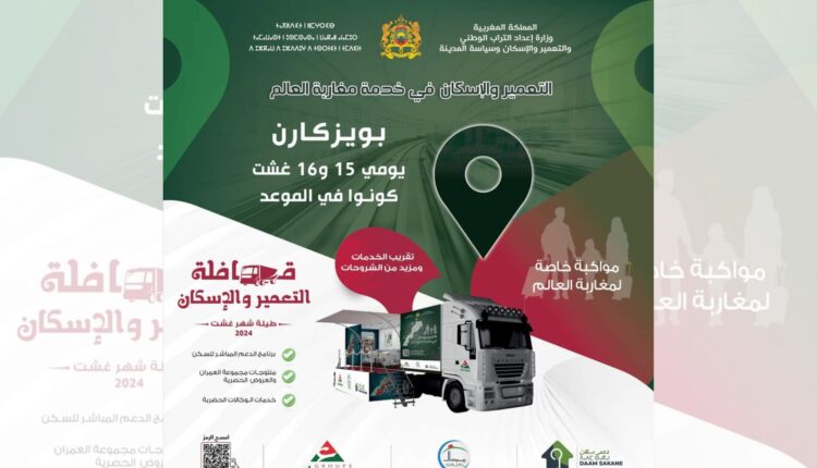 وتندرج هذه القافلة التي تتواصل على مدى يومين، في إطار الحملة الوطنية لاستقبال المغاربة المقيمين بالخارج، التي أطلقتها وزارة إعداد التراب الوطني والتعمير والإسكان وسياسة المدينة، تحت شعار” التعمير والإسكان في خدمة مغاربة العالم”.