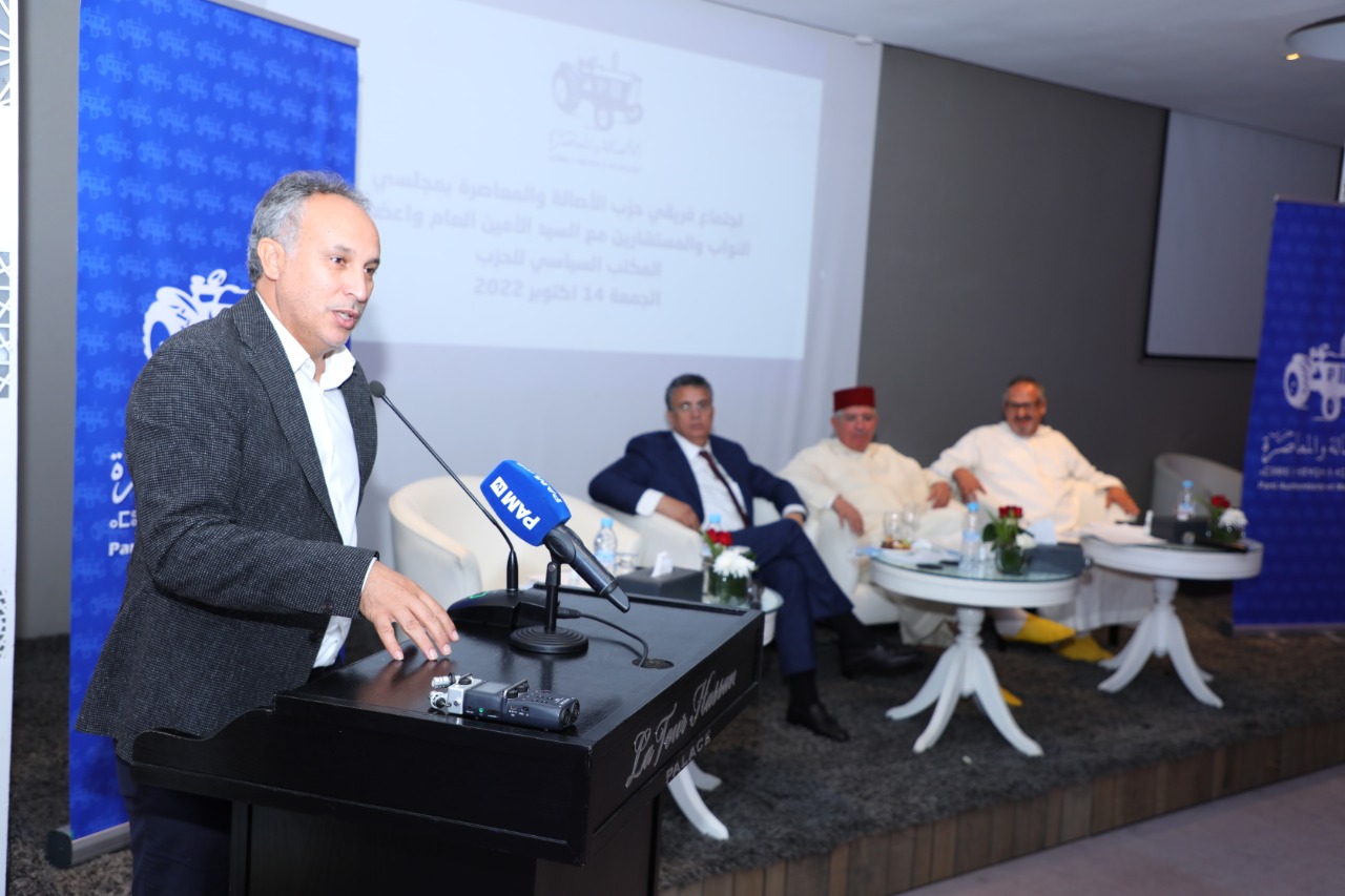 وشدد كودار في كلمة له خلال اللقاء الذي جمع الأمين العام والمكتب السياسي بالفريقين البرلمانيين لحزب الأصالة والمعاصرة، يومه الجمعة 14 أكتوبر 2022، بالرباط، على برلمانيي الحزب الرفع من وثيرة التنظيم الحزبي لإتمامه في أقرب وقت حتى يكون للحزب تنظيما جيدا، مؤكدا أن الرهان خلال هذه المرحلة على السيدات والسادة البرلمانيين هو الانخراط في هذه العملية وإعطائها بعدا تنظيميا أكثر قوة وأكثر فعالية على الصعيد الجهوي والإقليمي والمحلي.