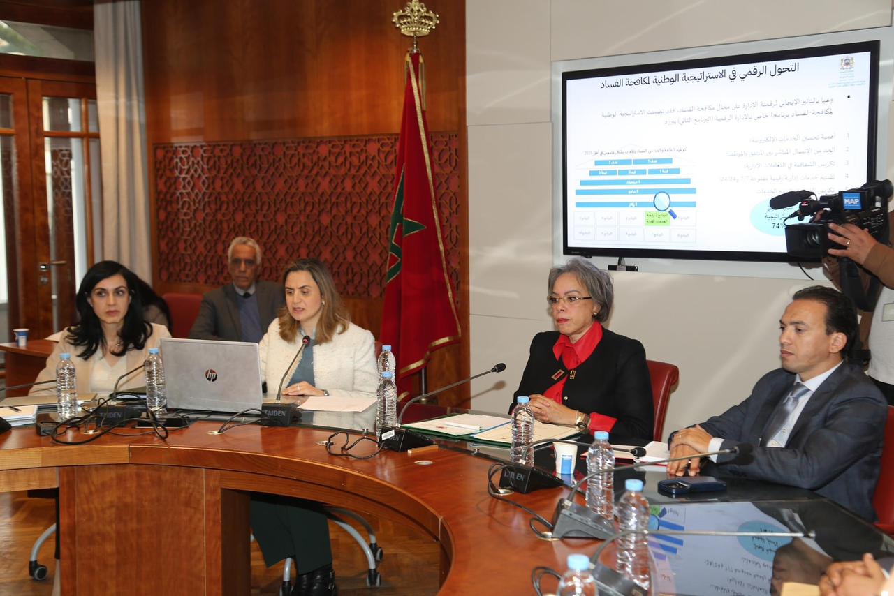 وافتتحت الأشغال بكلمة لرئيسة اللجنة ذكرت بأن هذا الاجتماع يأتي في إطار دراسة جانب من جوانب التقرير السنوي للهيئة الوطنية للنزاهة والوقاية من الرشوة ومحاربتها برسم سنة 2022، ألا وهو ورش الرقمنة كآلية من شأنها تسهيل ولوج المواطن للخدمات العمومية والحد من أسباب انتشار ظاهرة الرشوة، والذي خصصت له الهيئة التقرير المذكور لدعم طرحهــا الاقتراحــي الهــادف إلى تعزيــز مســار التحــول النوعــي المطلــوب في مجــال الوقايــة من الفســاد ومكافحتــه.