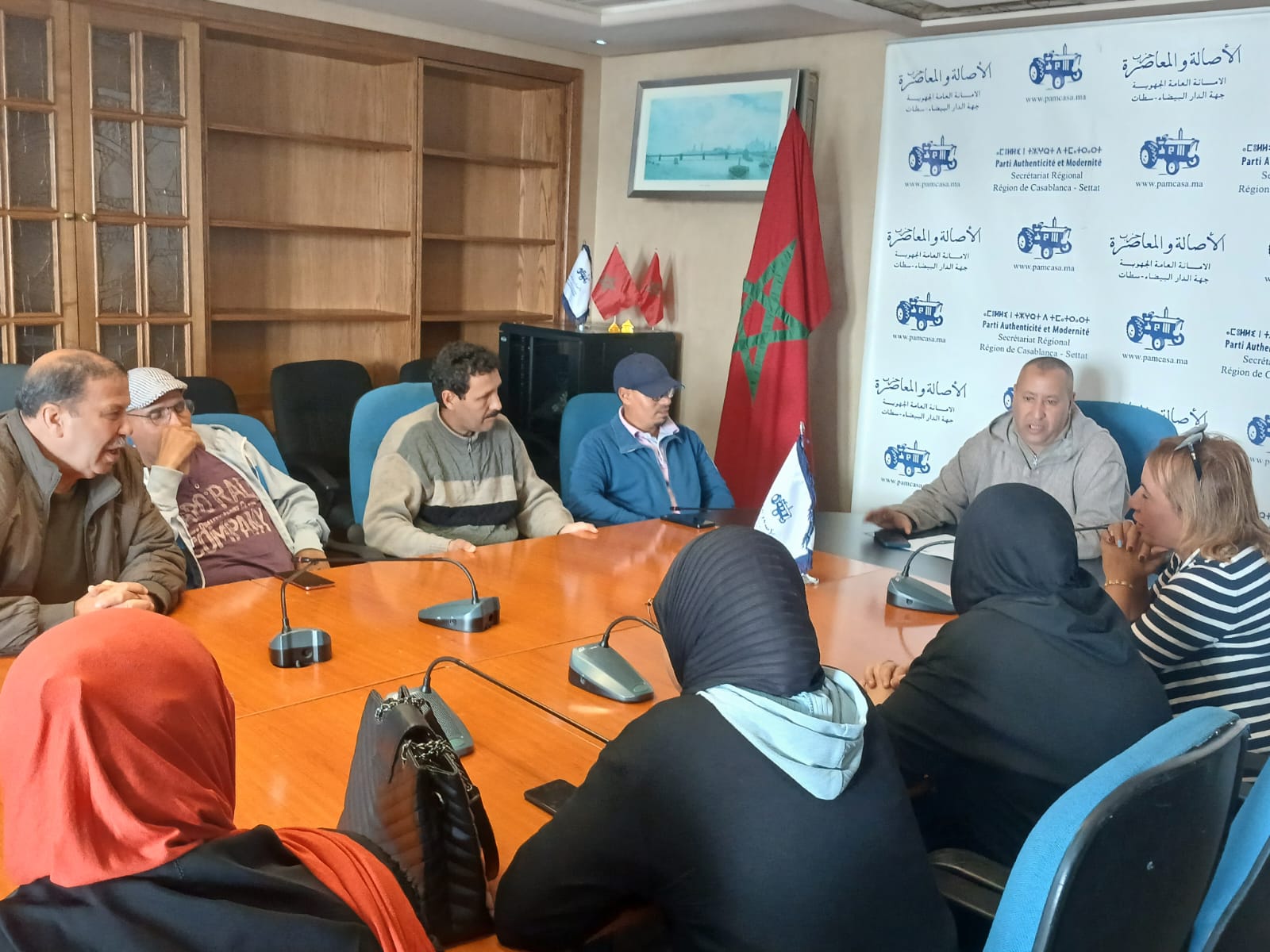 وشهد اللقاء حضور السيدة فاطمة الزهراء زيني، نائبة الأمين الإقليمي، إلى جانب أعضاء الأمانة المحلية، حيث شكل (اللقاء) مناسبة لتدارس سبل تعزيز العمل الحزبي الميداني على مستوى المقاطعة، وتحديد محاور برنامج عمل الأمانة المحلية للفترة المقبلة.