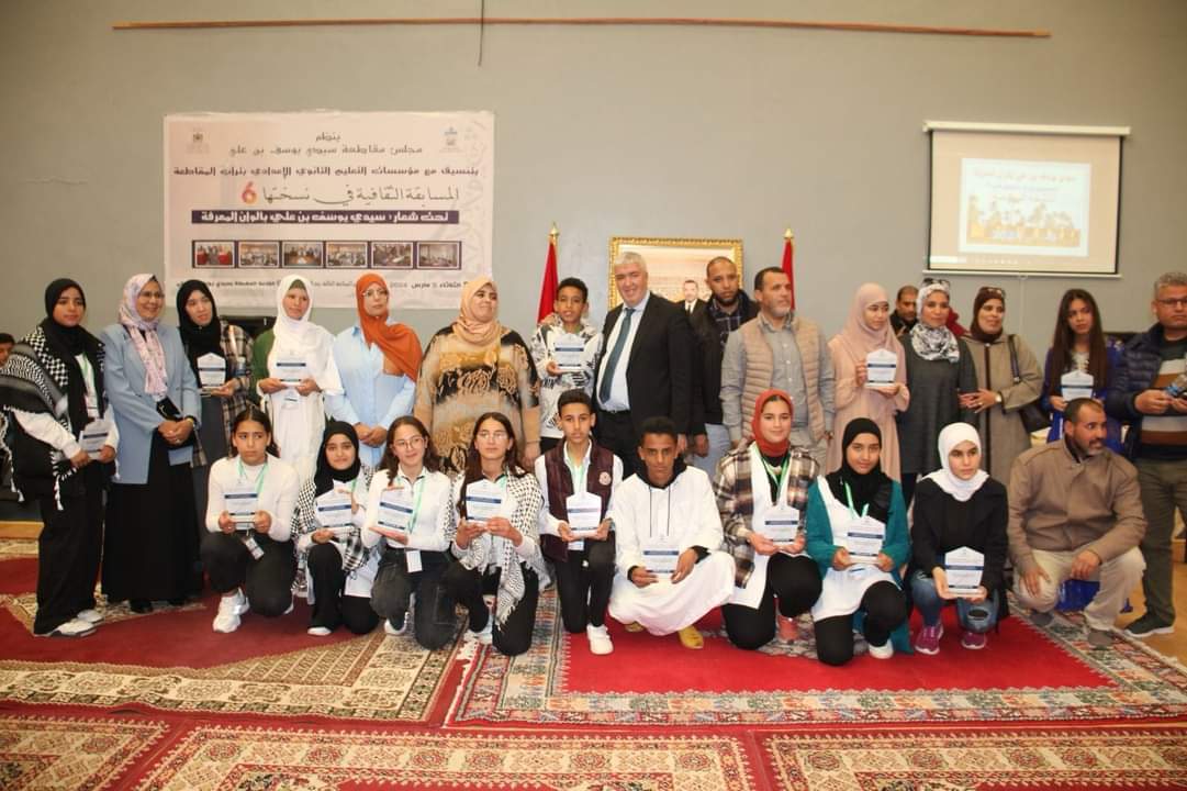 نظم مجلس مقاطعة سيدي يوسف بن علي برئاسة محمد نكيل، يوم الثلاثاء 5 مارس الجاري، المسابقة الثقافية في نسختها السادسة، وذلك بتنسيق مع مؤسسات التعليم الثانوي الاعدادي بتراب المقاطعة، تحت شعار: “سيدي يوسف بن علي بألوان المعرفة”.