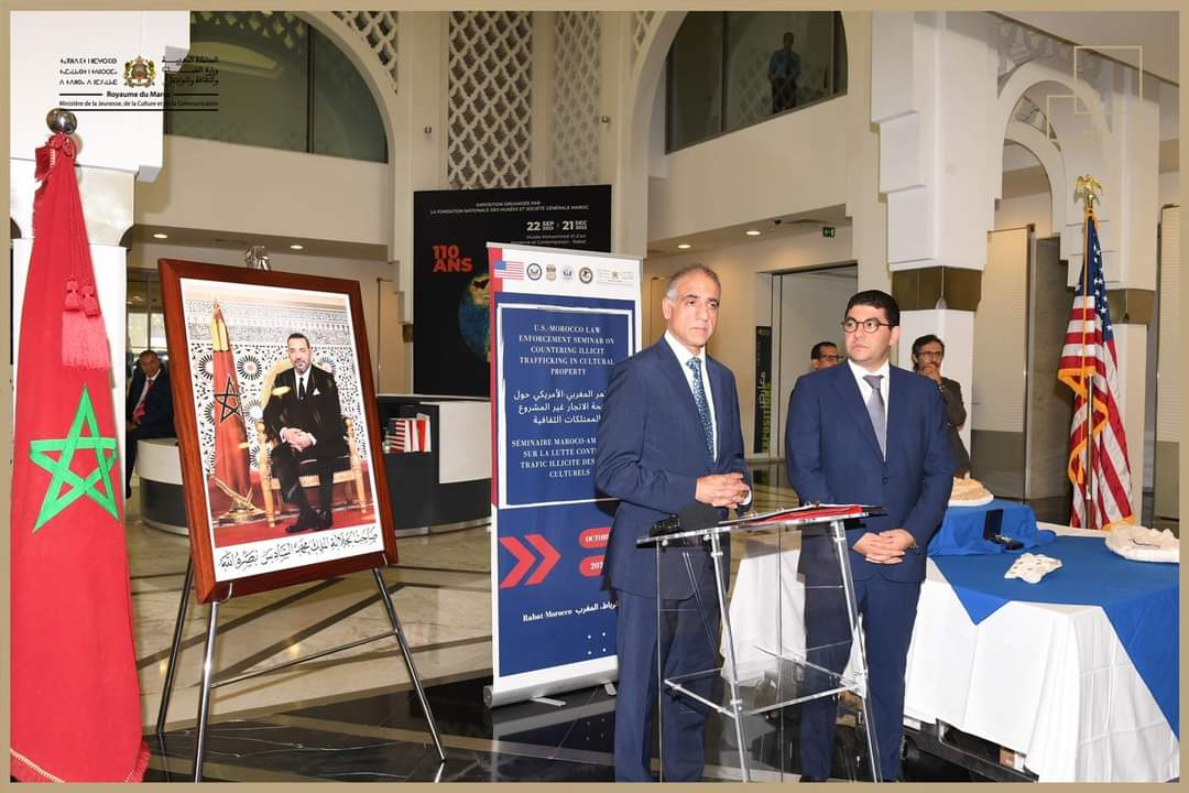 وخلال كلمة له بالمناسبة، أكد السيد بنسعيد أن هذا الحدث الهام يأتي تنفيذا لاتفاقية الملكية الثقافية التي تجمع بين المملكة المغربية والولايات المتحدة الأمريكية الموقعة سنة 2021، مشددا على ضرورة تقوية الشراكة الاستراتيجية بين الوزارة والسفارة الأمريكية بالمغرب من أجل تعزيز التعاون في مكافحة الاتجار بالممتلكات الثقافية.