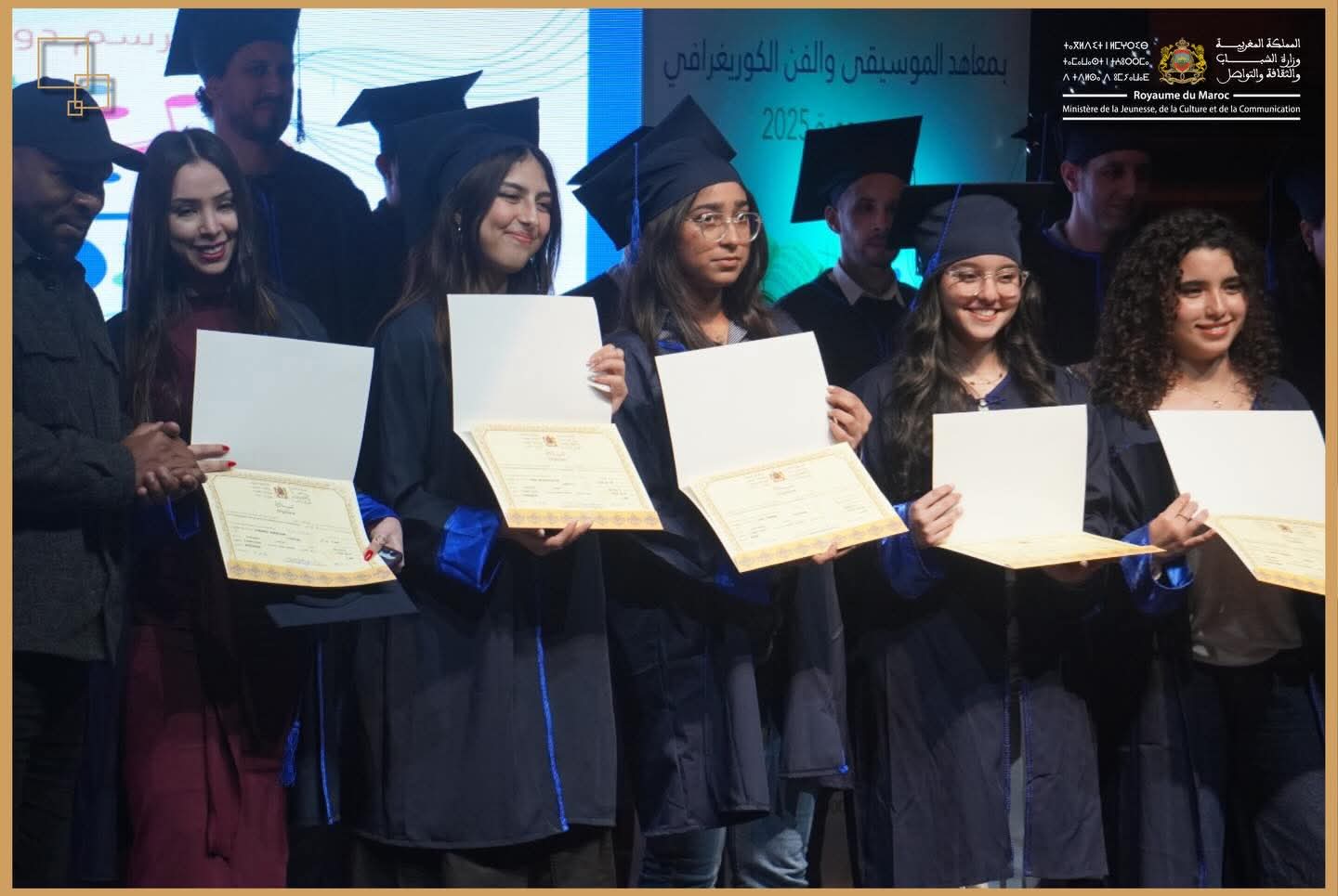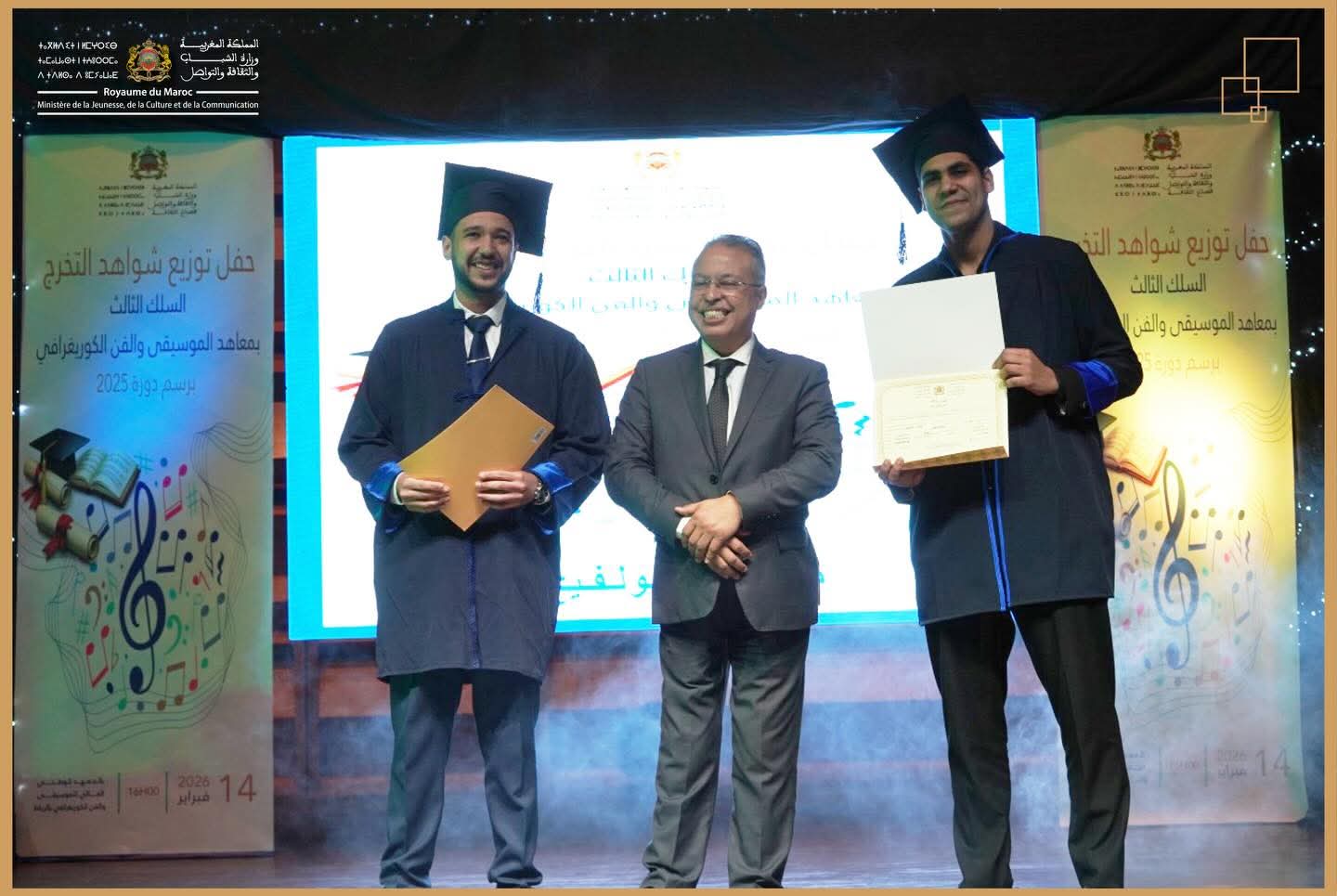 احتضن؛ المعهد الوطني العالي للموسيقى والفن الكوريغرافي حفل تخرج فوج جديد من طلبة السلك الثالث بمعاهد الموسيقى والفن الكوريغرافي، في مناسبة أكاديمية وثقافية تعكس المكانة المتميزة التي تحتلها الفنون ضمن منظومتنا التربوية، وفي صلب استراتيجية الوزارة الرامية إلى الارتقاء بالتكوين الفني.