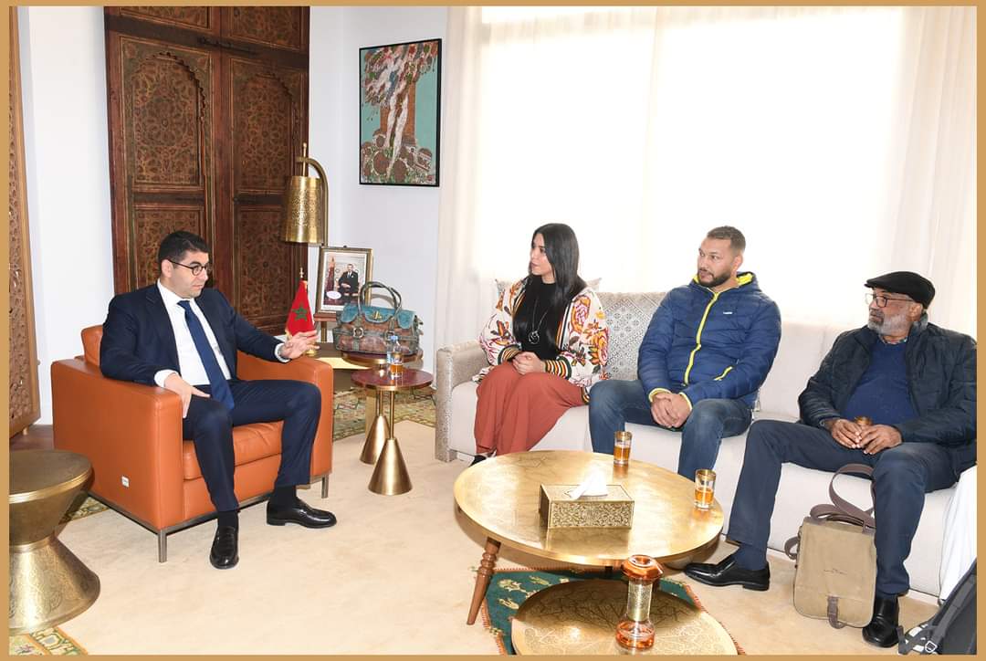 استقبل، وزير الشباب والثقافة والتواصل، محمد المهدي بنسعيد، الفرقة المسرحية “فوانيس المسرح” الحائزة على الجائزة الكبرى لمهرجان المسرح العربي بمصر هذه السنة، وذلك عن عرضهم المسرحي “تكنزا… قصة تودا”. إلى جانب الفرقة المسرحية “أرتميس للفنون” الحائزة على الجائزة الكبرى للمهرجان الوطني للمسرح لسنة 2022 بمدينة تطوان وذلك عن عرضهم المسرحي “غيثة”.