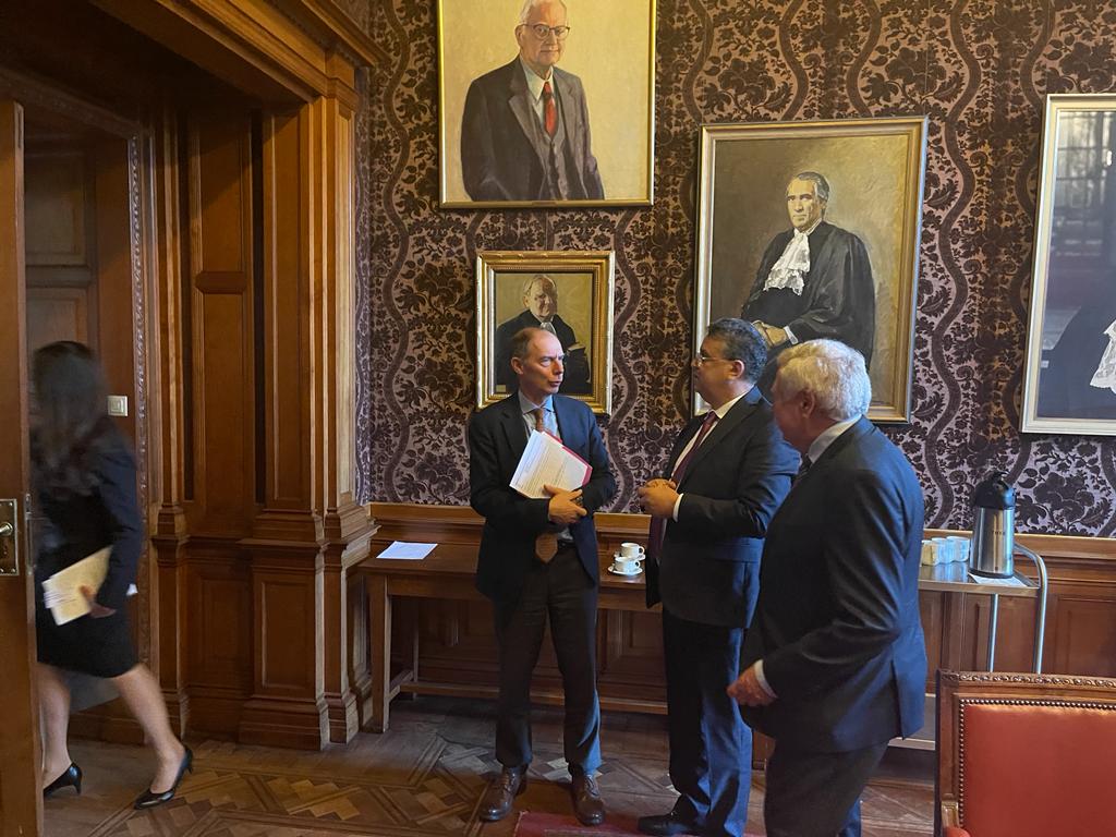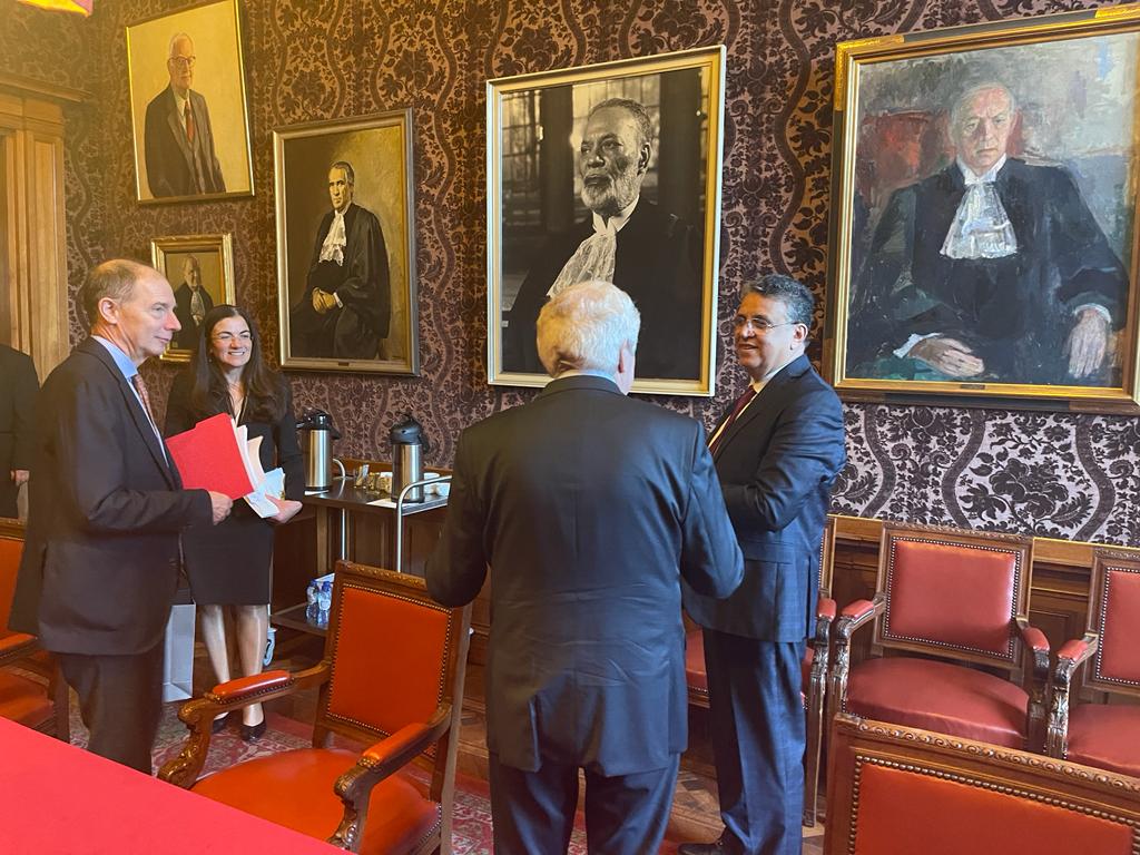 وخلال الزيارة عقد وزير العدل السيد وهبي، لقاءً مع مسجل محكمة العدل الدولية السيد فيليب جوتيغ، واستعرض أمامه مكانة هذه المحكمة والأدوار التي تقوم بها، مبرزاً الملفات والقضايا التي فصلت فيها، وأهميتها في خدمة القضايا الدولية الانسانية وما تتميز به من أحكام قضائية مهمة، بالإضافة إلى ما راكمه خيرة قضاة العالم من تجارب من هذه المحكمة الجديرة بالاهتمام والتتبع والاطلاع على تجربتها.