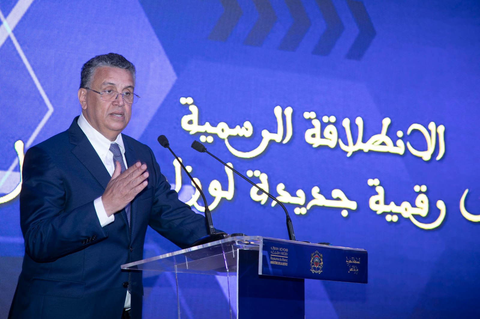 وأكد وزير العدل خلال حفل الإطلاق الذي احتضنه المعهد العالي للقضاء، يومه الاثنين 10 أبريل 2023، وحضرته وزيرة الانتقال الرقمي وإصلاح الإدارة، الرئيس المنتدب للمجلس الأعلى للسلطة القضائية؛ ورئيس النيابة العامة؛ والوزير المنتدب لدى رئيس الحكومة المكلف بإدارة الدفاع الوطني؛ بالإضافة الى مسؤولين في قطاع العدالة، (أكد) أن مسار تحديث منظومة العدالة ورقمنة مختلف خدماتها حظي بمكانة جد مهمة في الخطب والرسائل الملكية السامية، إذ تستمد المحكمة الرقمية مرجعتيها أساسا من التوجيهات الملكية التي أثارها جلالته حفظه الله ونصره في العديد من المناسبات، والتي رسخ معها مفهوما جديدا لإصلاح العدالة يقوم على مبدأ “القضاء في خدمة المواطن”.