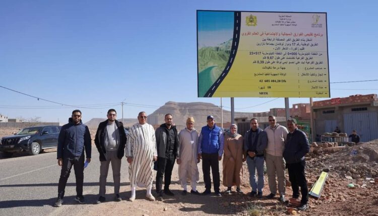 وحل الوفد بجماعة تازارين، للوقوف على وضعية تقدم أشغال بناء الطريق غير المصنفة الرابطة بين الطريق الوطنية رقم 17 ودوار لوكمان في شطرها الأول، والتي تضم طريقين فرعيين، الأولى تهم تكشتمت على طول 9,67 كيلومتر والثانية آيت علي احسو ايمي نواقا على طول 0,39 كيلومتر، بكلفة مالية تتجاوز 42 مليون درهم.