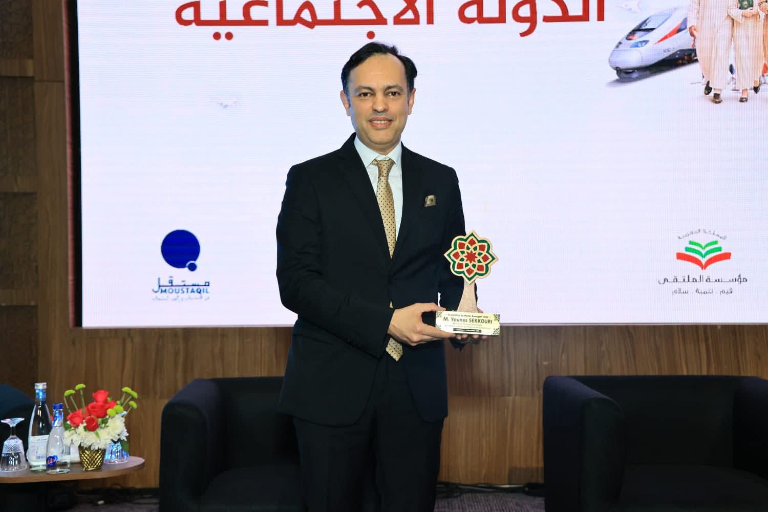 تسلم، وزير الإدماج الاقتصادي والمقاولة الصغرى والتشغيل والكفاءات، يونس السكوري، “الجائزة الكبرى للمغرب الصاعد”، من طرف مؤسسة الملتقى ومؤسسة مستقل ،تكريما للجهود المبذولة دعما للشباب وترسيخا لنموذج الدولة الاجتماعية في بلادنا.